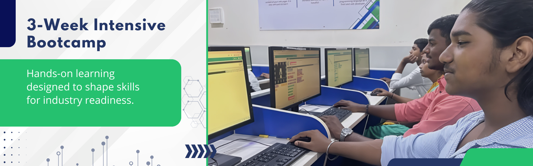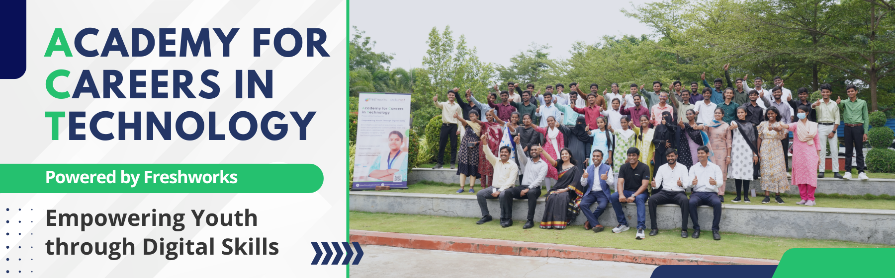 Edunet Foundation in collaboration with Freshwork's, presents Academy of Careers in Technology initiative tailored for 12th pass out students, responding to the swift evolution of job roles fueled by Full Stack Development in IT sector. This comprehensive course spans over 12 months of classroom training followed by 3 months of project-based learning.